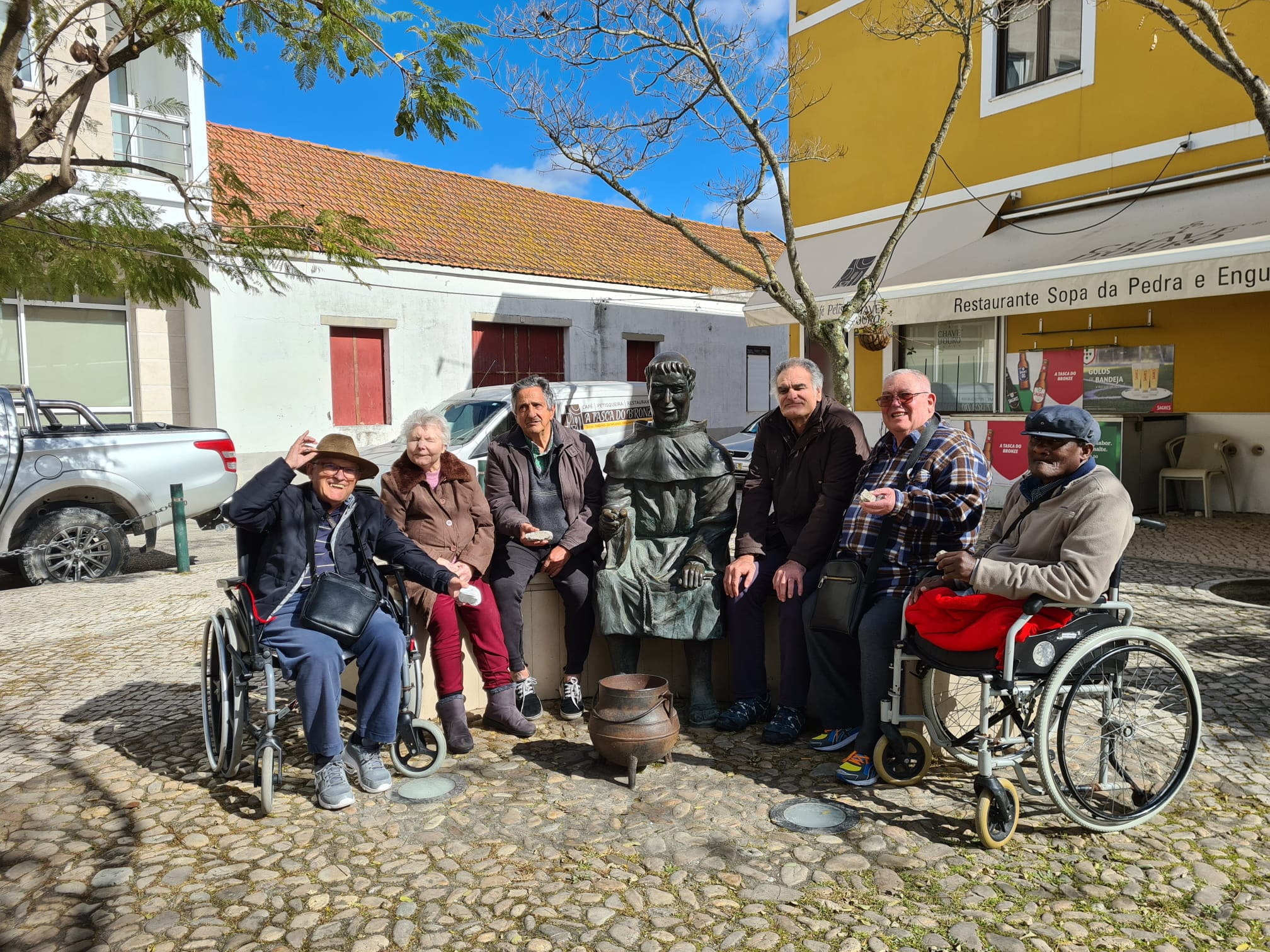 Seguiu-se viagem para Almeirim, onde os nossos utentes foram provar as belas iguarias da terra. Para o almoço, a famosa “Sopa da Pedra” acompanhada pelas “Caralhotas de Almeirim”, um pão típico da zona.