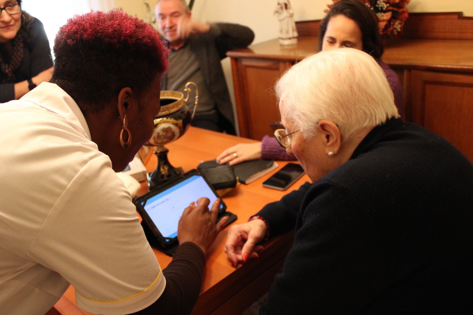 Durante a visita, os representantes da Gulbenkian tiveram a oportunidade de assistir às boas práticas implementadas pelo SAD, quer para as ajudantes familiares, quer para os/as beneficiários/as do projeto.