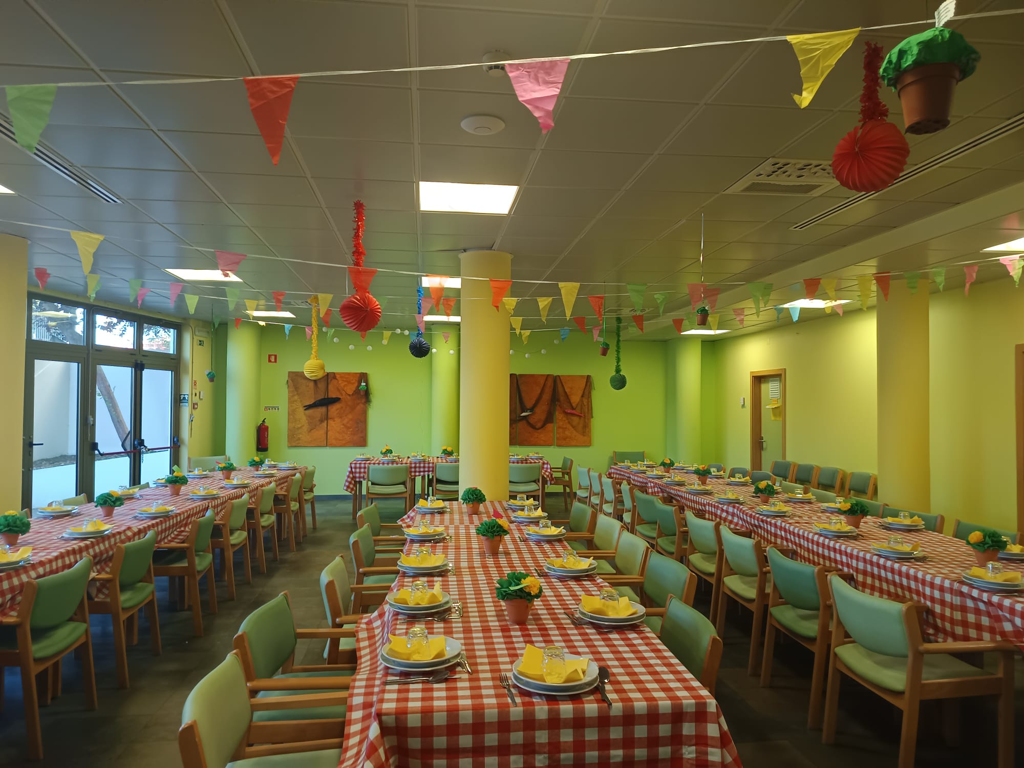 No Centro Social da Trafaria, a preparação destas festividades contou com a colaboração ativa dos utentes, que participaram com entusiasmo na elaboração das decorações e na decoração das mesas, contribuindo para criar um ambiente acolhedor e festivo.
